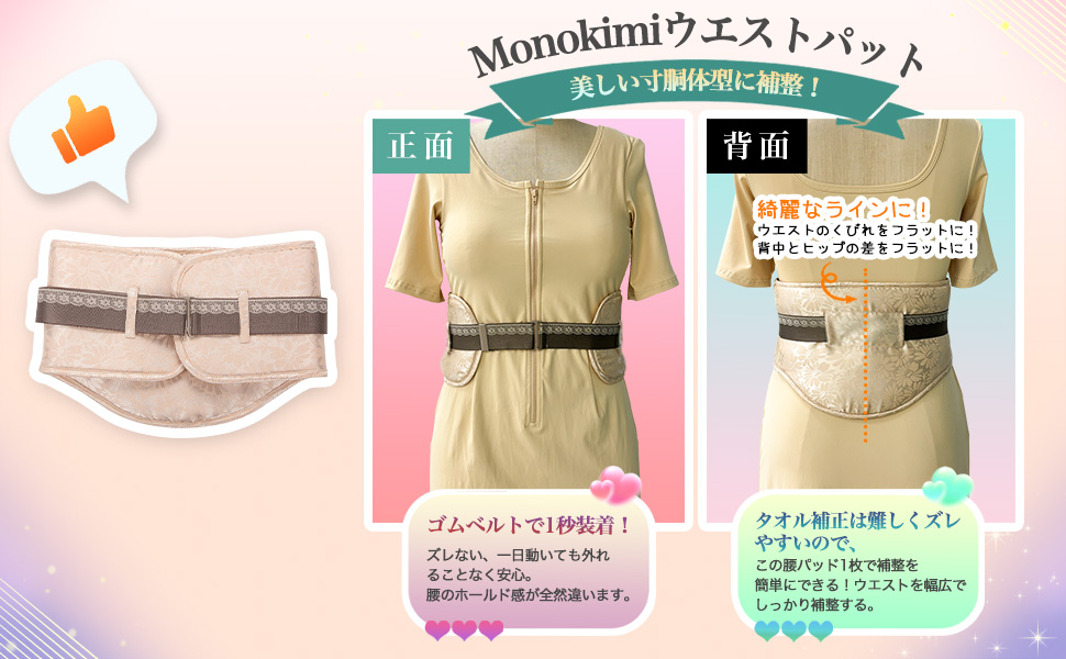 💖【楽&使いやすい】ワンタッチでフックを掛けるだけで楽に着れます。補整を簡単にし、着付け時間が大幅に短縮。きもの初心者の方でも手軽に使えるため、おススメです。ビップパットの部分には内側ポケットも設けてあり、自身の体型に合わせてパットを追加することも可能です。